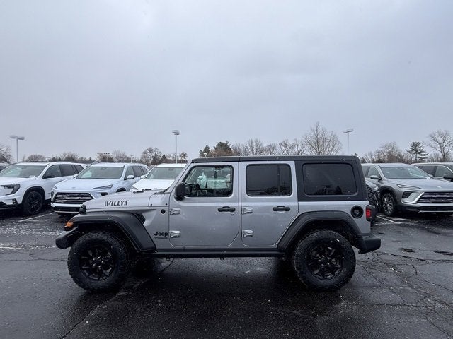 Start your Serra experience — call 248-844-2090! Priced below KBB Fair Purchase Price! Wrangler 4WD 2.0L I4 DOHC Unlimited Willys 8-Speed Automatic This Jeep Wrangler is well equipped and includes these key features and benefits, 4-Wheel Drive Swing Gate Decal, 7.0 Touchscreen Display, 8 Speakers, ABS brakes, Air Conditioning w/Auto Temperature Control, Air Filtering, Anti-Lock 4-Wheel Disc HD Brakes, Anti-Spin Differential Rear Axle, Apple CarPlay, Automatic Headlamps, Aux Battery, Black Grille, Black Trail Rated Badge, Cluster 7.0 TFT Color Display, Cold Weather Group, Convenience Group, Deep Tint Sunscreen Windows, Dual front impact airbags, Dual front side impact airbags, Front 1-Touch Down Power Windows, Front LED Fog Lamps, Google Android Auto, GPS Antenna Input, Heated Front Seats, Heated Steering Wheel, Integrated Center Stack Radio, Leather Wrapped Steering Wheel, LED Headlamp & Fog Lamp Group, LED Reflector Headlamps, Matte Black Jeep Badge, MOPAR All-Weather Floor Mats, ParkView Rear Back-Up Camera, Power Heated Mirrors, Quick Order Package 22W Willys, Radio: Uconnect 4 w/7 Display, Rear anti-roll bar, Remote Keyless Entry, Security Alarm, SiriusXM Satellite Radio, Speed control, Speed Sensitive Power Locks, Split folding rear seat, Steering wheel mounted audio controls, Sun Visors w/Illuminated Vanity Mirrors, Technology Group, Telescoping steering wheel, Tilt steering wheel, Universal Garage Door Opener, USB Host Flip, Wheels: 17 x 7.5 Moab Black Aluminum, Willys, Willys Hood Decal, Wrangler Decal.